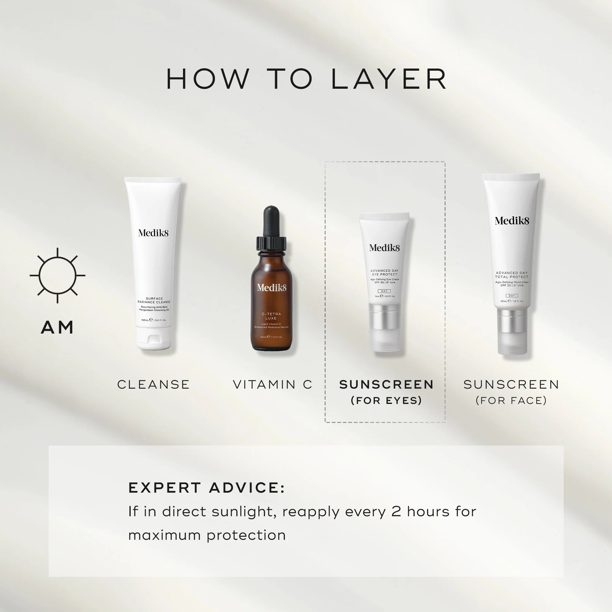 After cleansing in the morning, apply a liberal amount of Advanced Day Eye Protect around the eye area, avoiding eyelids.